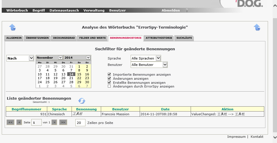 Hier können Sie gezielt nach Änderungen der Benennungen suchen.